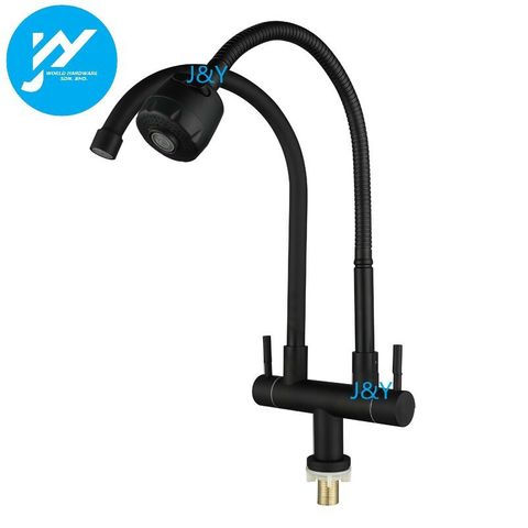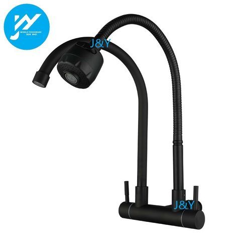 Black Kitchen Double Flexible Wall Water Tap SUS 304 Stainless Steel Premium Quality 黑横式双万向水龙头
