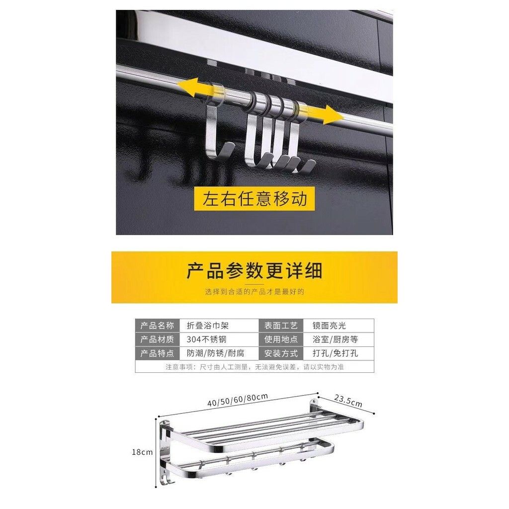 2 Tier 60 CM Towel Rack 304 Stainless Steel Premium Quality Punch Free