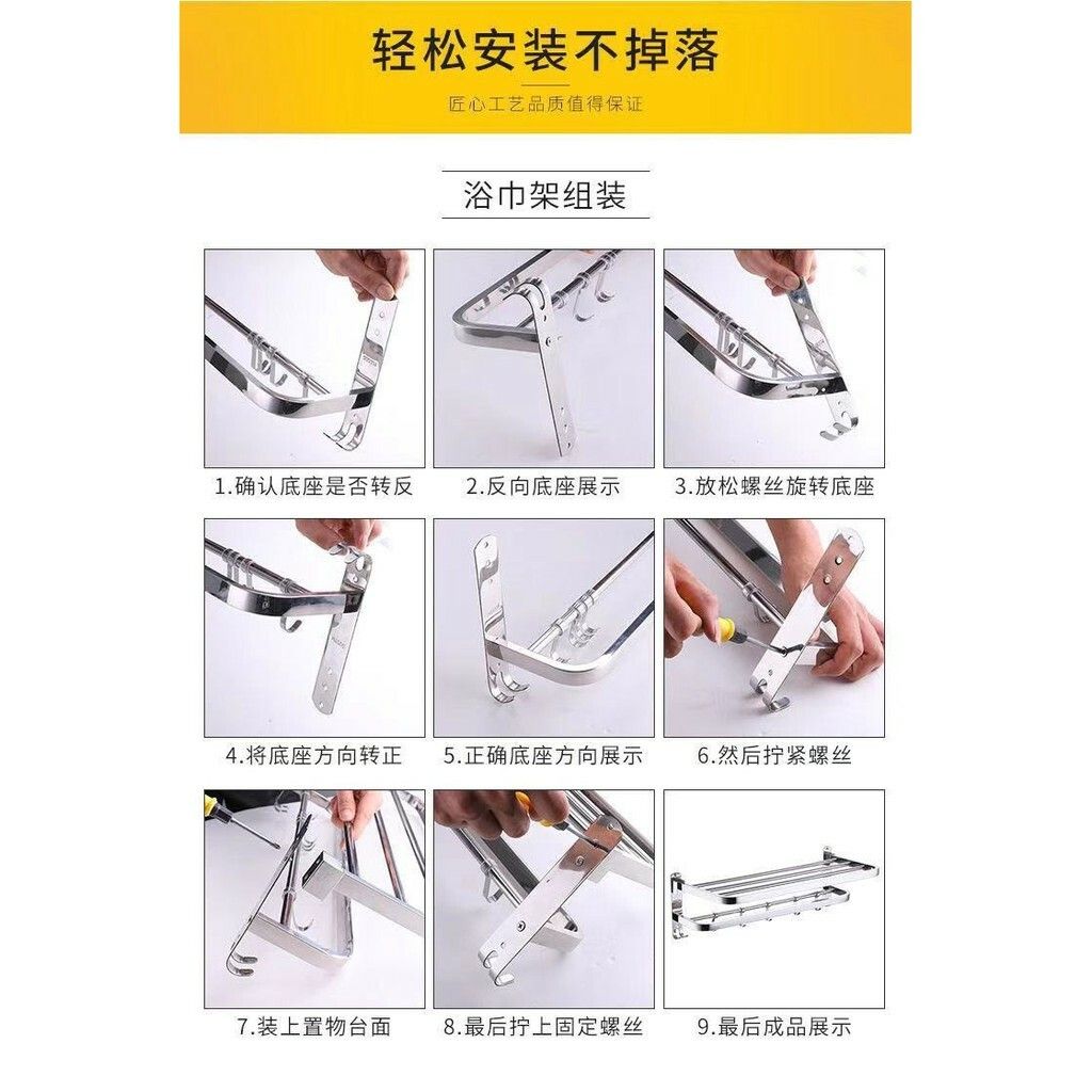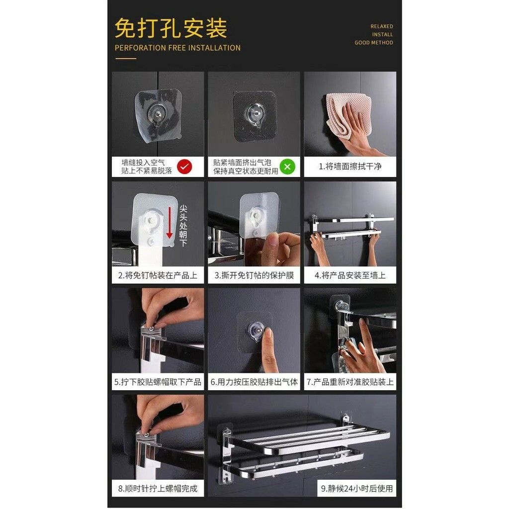 2 Tier 80 CM Towel Rack 304 Stainless Steel Premium Quality Punch Free