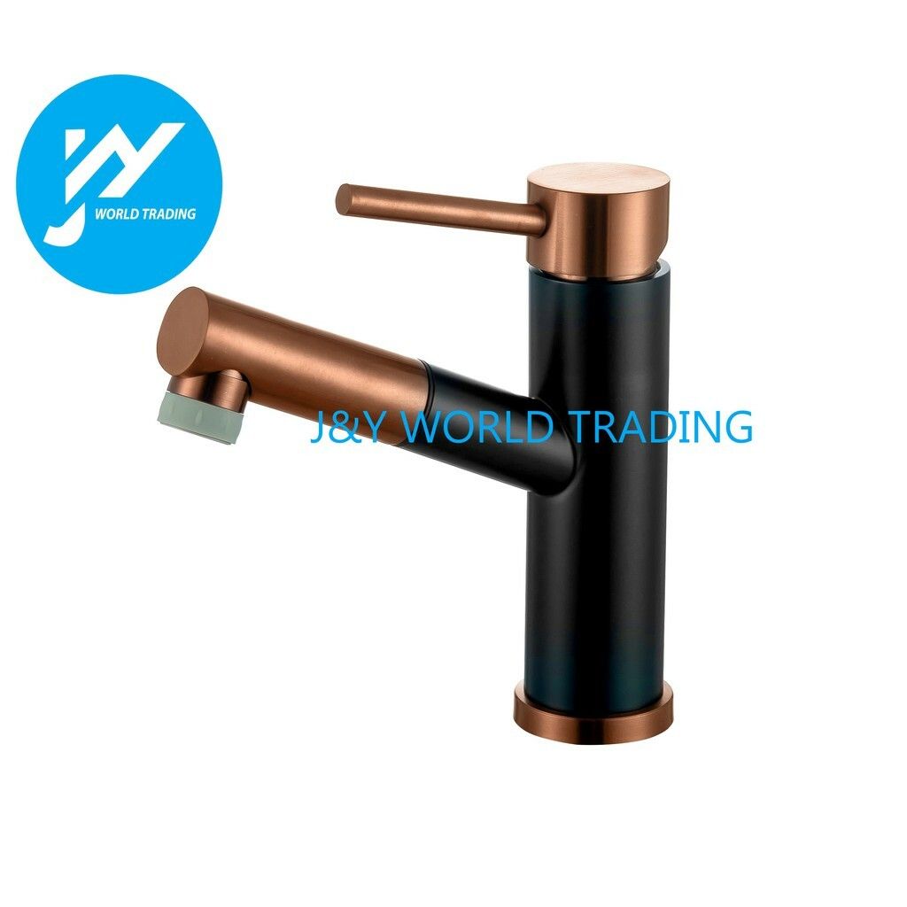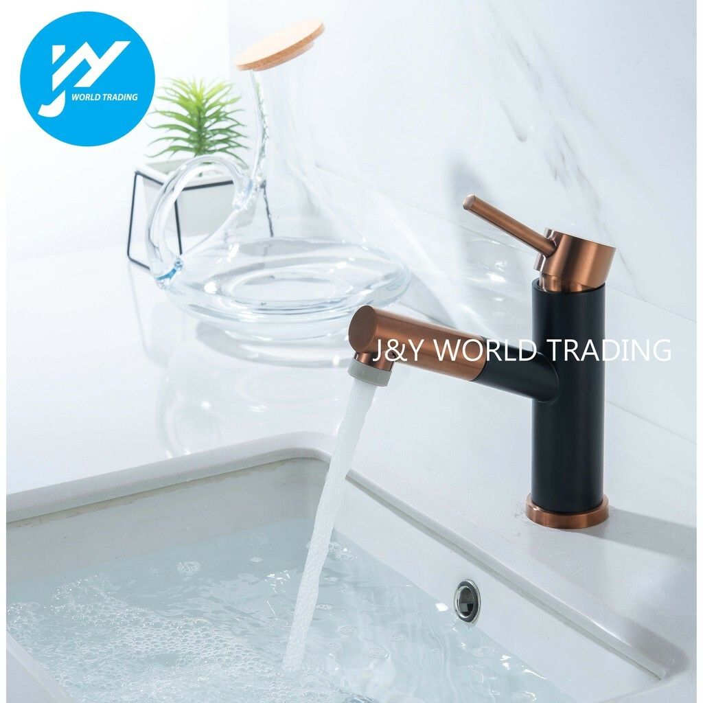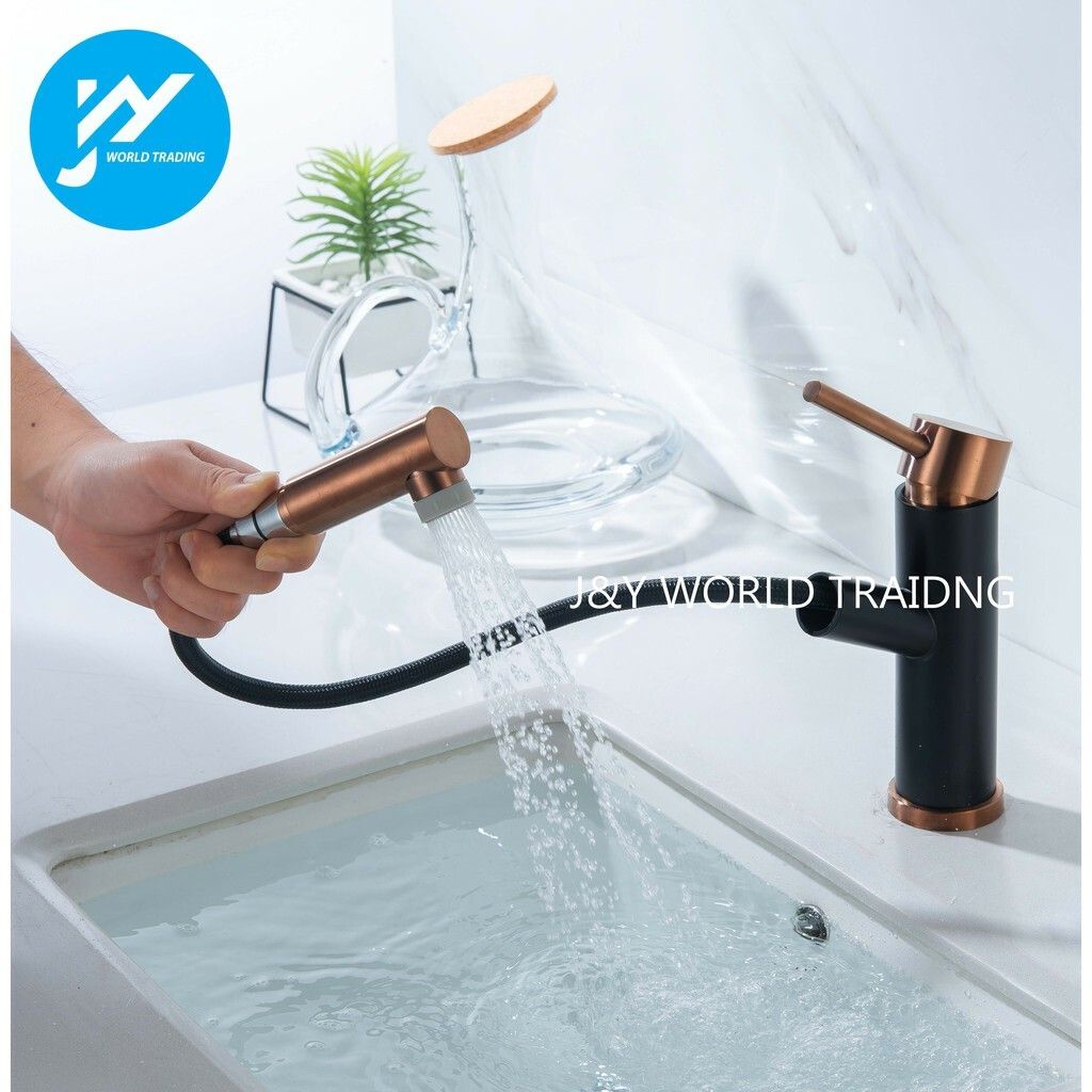 Hot Cold Mixed Bathroom Black & Gold Rose Modern Tap Single Lever Pull Out Spray Faucet 304 Stainless Steel