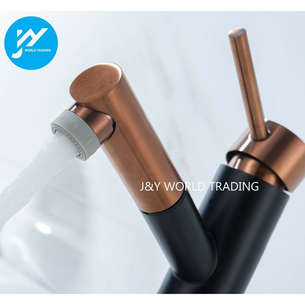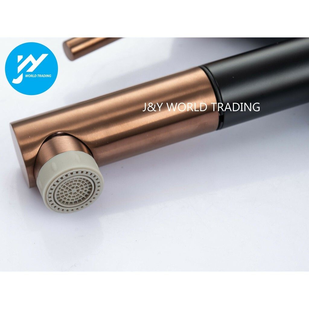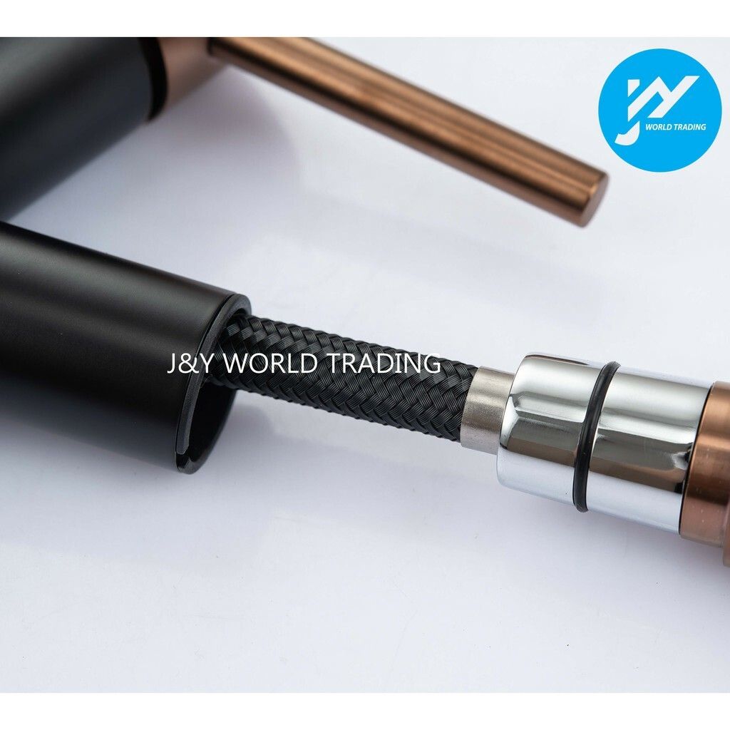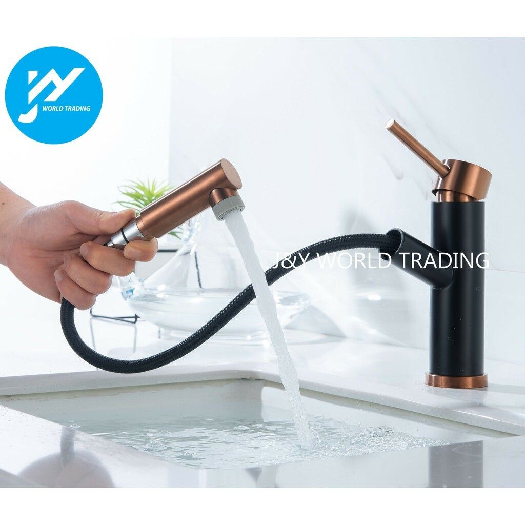 Hot Cold Mixed Bathroom Black & Gold Rose Modern Tap Single Lever Pull Out Spray Faucet 304 Stainless Steel