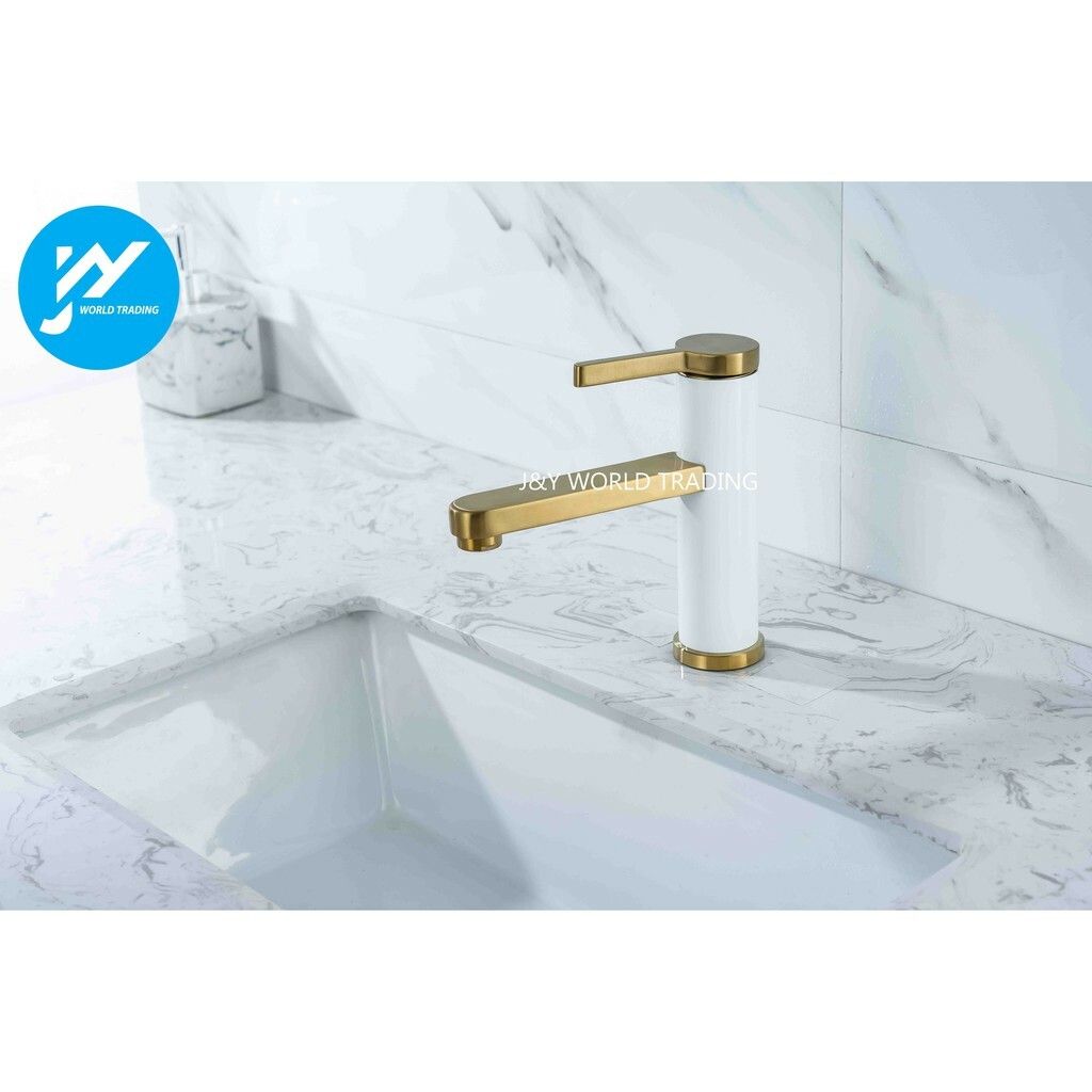 Pearl White And Gold Hot Cold Mixed Bathroom Faucet Basin Tap SUS 304 Stainless Steel Premium Quality