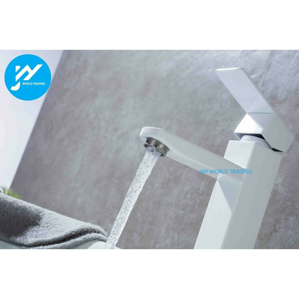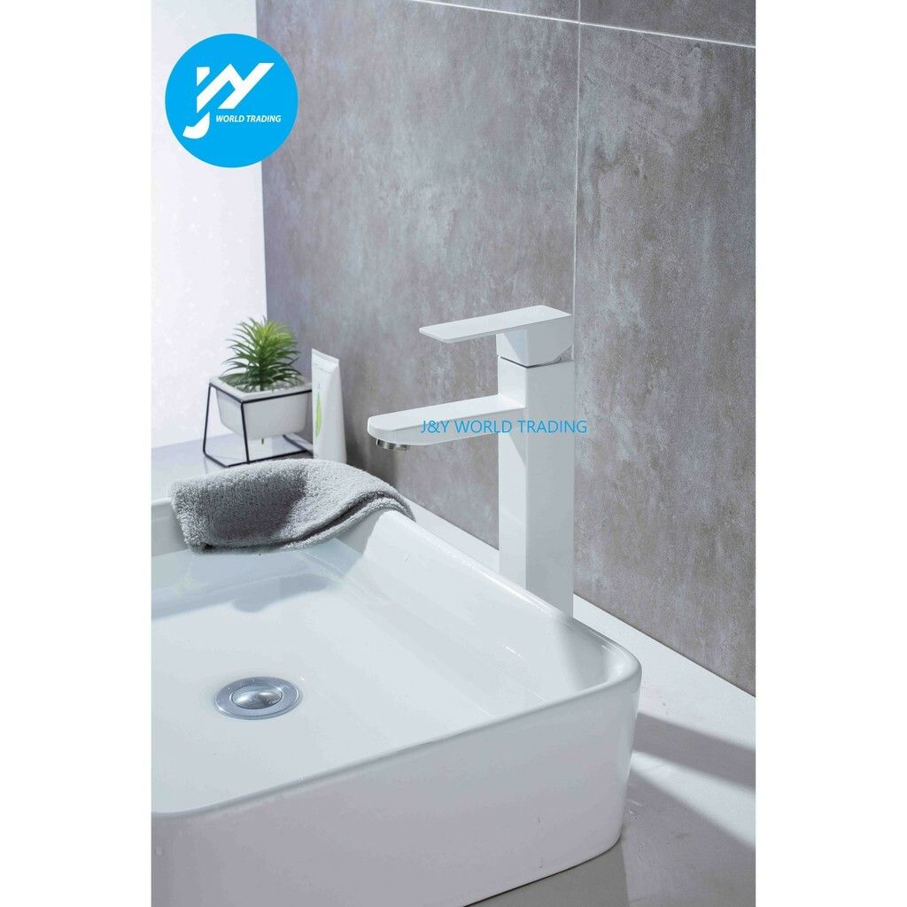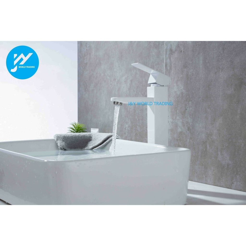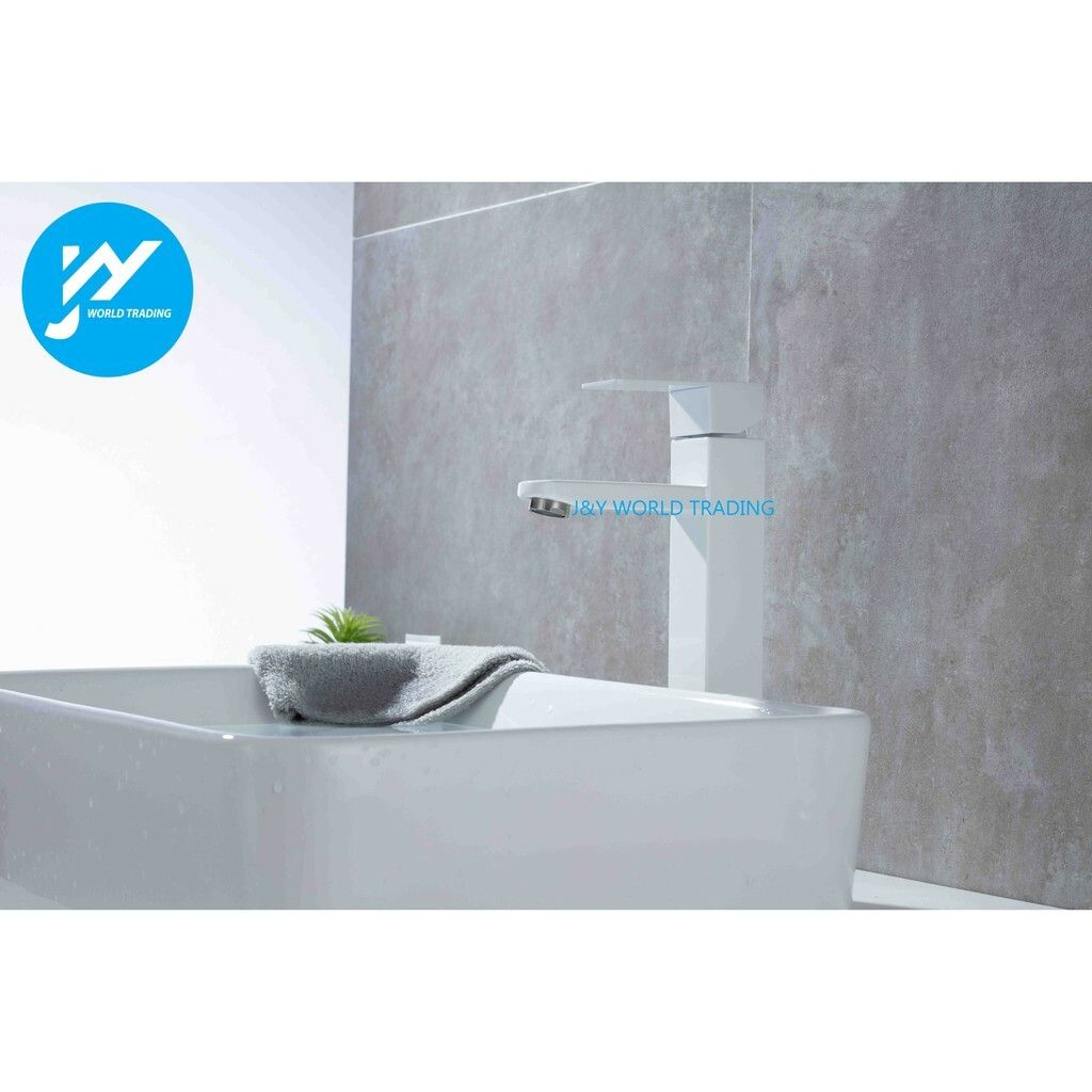 Pearl White Squad 30cm Hot Cold Mixed Bathroom Faucet Basin Tap SUS 304 Stainless Steel Premium Quality