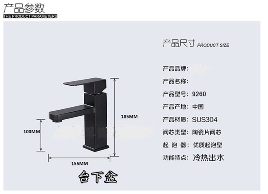 Product details of Squad Black Hot Cold Mixed Bathroom Faucet Basin Tap SUS 304 Stainless Steel Premium Quality