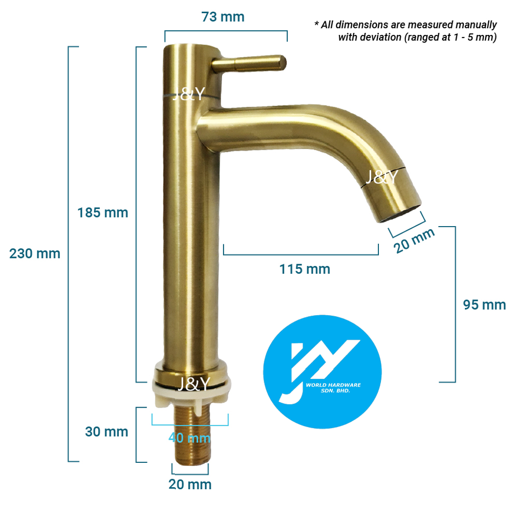 Stainless Steel 304 Bathroom Gold Faucet Basin Tap Premium Quality (Bend Mount)