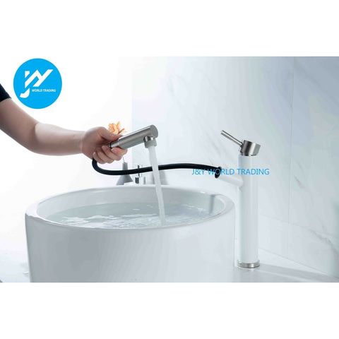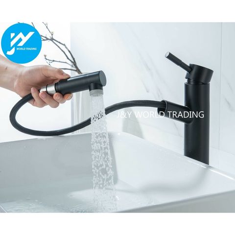 Hot Cold Mixed Bathroom Black 304 Stainless Steel Modern Tap Single Lever Pull Out Spray Faucet