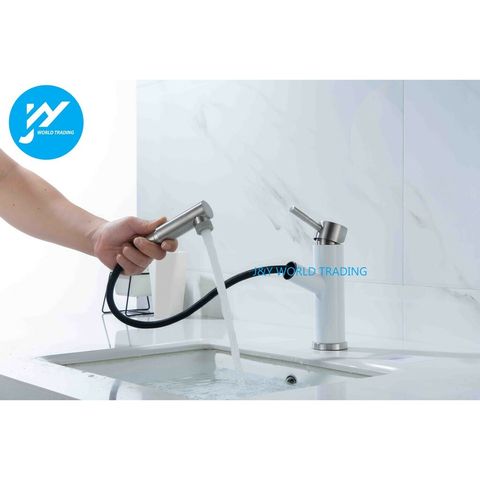 Hot Cold Mixed Bathroom Silver 304 Stainless Steel Modern Tap Single Lever Pull Out Spray Faucet